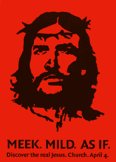 I reckon we could do two things: drop the consumer push, and develop a product. Firstly, we take to heart what Paul Harrison notes above: that advertising truly hits the mark for current users. We start with brand loyalty amongst Christians, who are the ones actually doing the advertising. Secondly, we make Jesus our product. This is not so much to commodify Jesus as to recognise that advertising involves extreme distillation: something complex is intensely purified into sheer image and slogan.