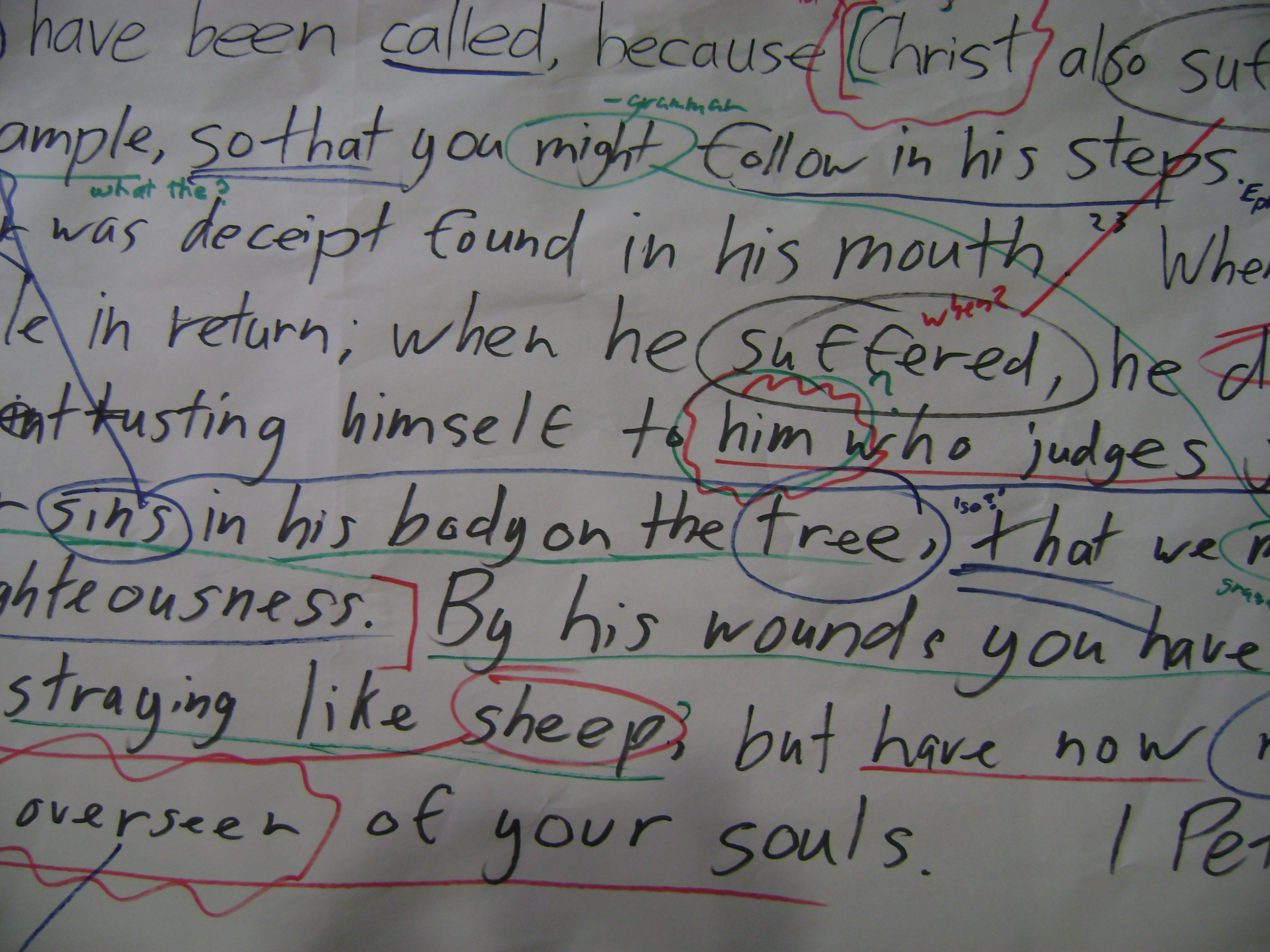3. Add extra content where appropriate. Christian students can sometimes switch automatically into deductive thinking, using a framework with the text without also working outwards from the text. We discussed the dangers of working carelessly with theological frameworks (in this case, Goldsworthy’s kingdom framework) and explored the place of inductive thinking.