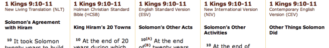In effect, however, these headings put a certain spin on the story. In this case, they lead us to imagine that Solomon’s reign was the glorious climax of Israel: a king who was shrewd and busy and powerful and, we imagine, worthy of celebration. Maybe that is still the Solomon you think of!