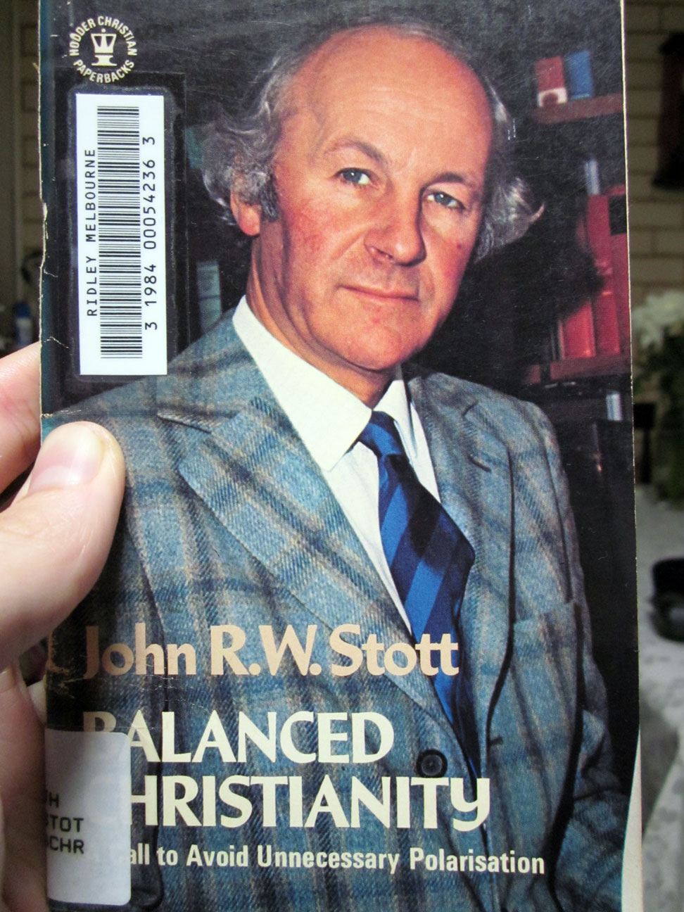 Killer suit, isn’t it? Balanced Christianity: a call to avoid unnecessary polarisation is a 1975 booklet, the earliest expression I’ve seen of John Stott’s both-and approach, which seeks to embrace both poles in order to avoid polarisation. The strength of this lies not in the ‘both-and’ notion (which on its own would leave us in limbo) but in Stott’s prophetic identification of our own tendencies as evangelicals: where are we too extreme or out of kilter?