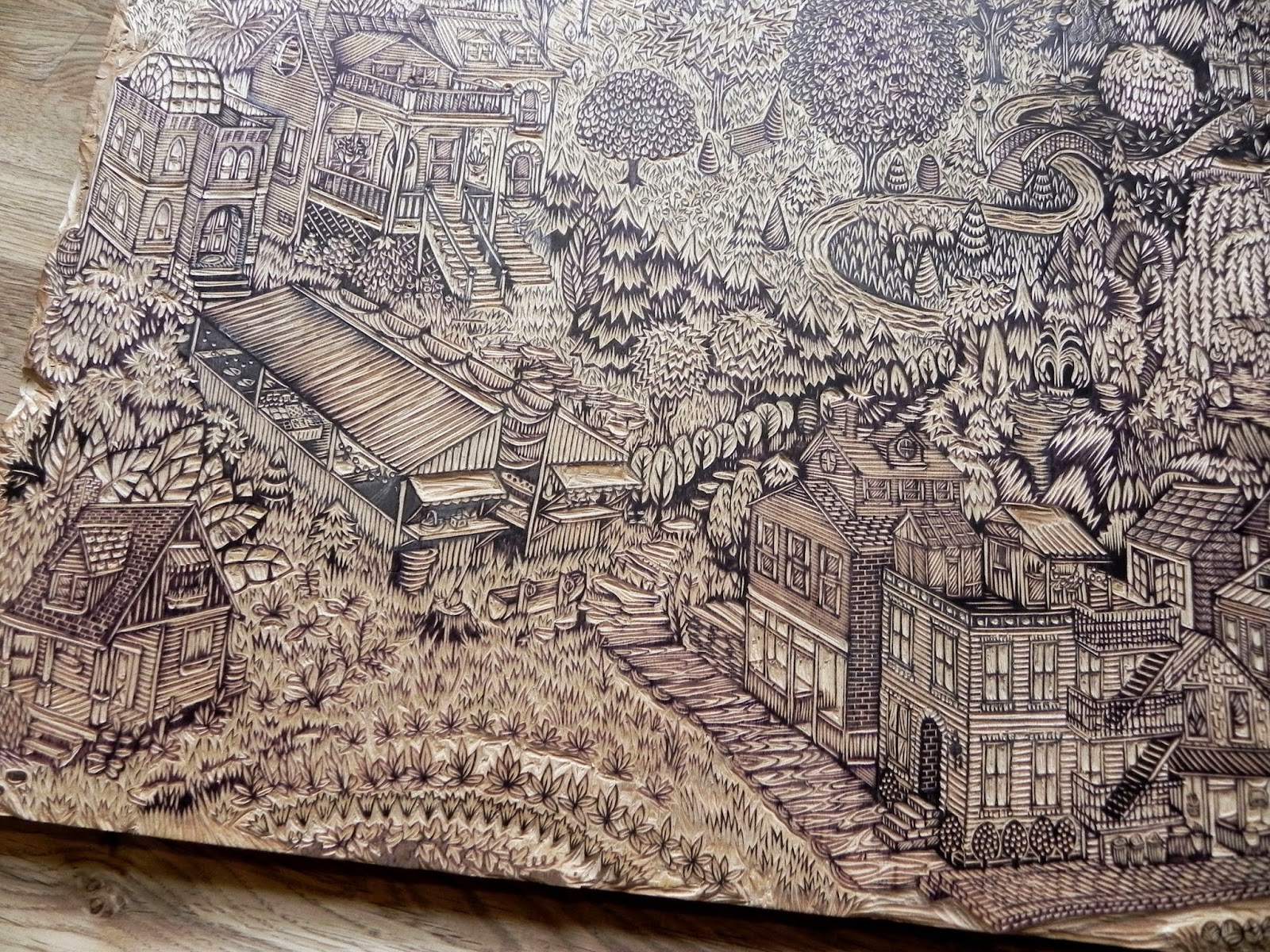 ‘Community’ woodcut, in progress, by Tugboat Printshop (Valerie Lueth and Paul Roden), 2014. See the finished print.