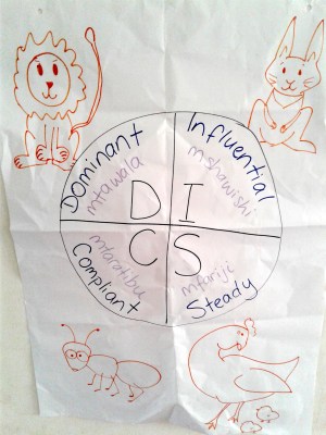 But doing a seminar in Swahili is more than just translating words; it also about concepts. For example, common shorthand for DISC is to use an animal to represent each type: