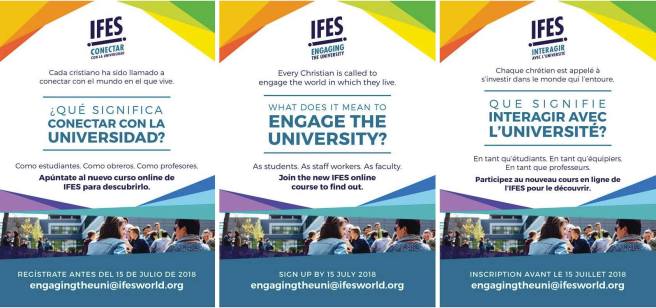 - The e-learning course is launching now, and you can join the first cohort by emailing engagingtheuni@ifesworld.org by 15 July (click the brochure below). It’s available in Spanish, French and English.