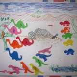 This was a super easy craft to do while we were on holidays at the start of the year, thanks to some foam stickers someone sent us. Elliot stuck them on and Arthur and I drew a background with some textas sent to us by someone else.
