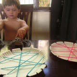 Another use for paper plates – spider webs! We have stacks of spiders (along with various bugs) in our house so Elliot knows all about them and how to be safe around them. But these spiders were talking about having a tea party!